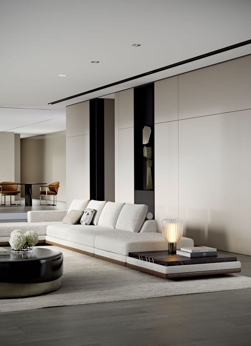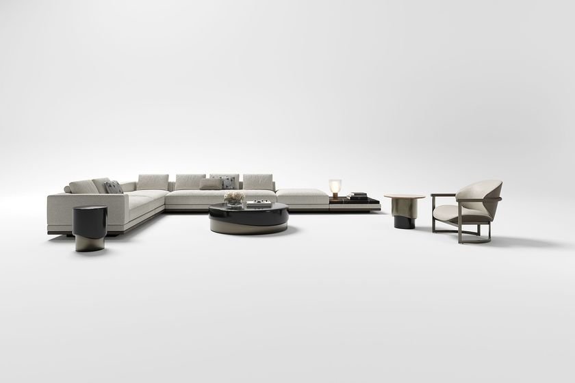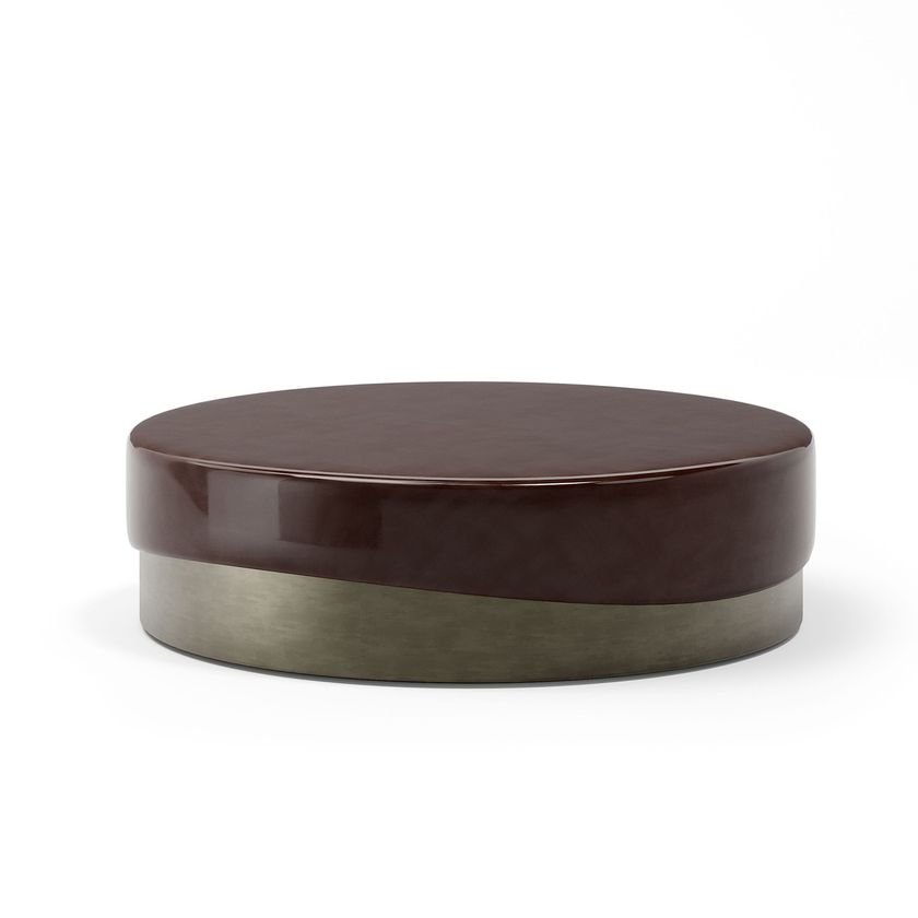 A solid metallic base supports a fluid, glossy surface. The soft lines, crafted with the highest quality artisanal processes, delicately reflect light, accentuating the details of the shape and adding a touch of contemporary luxury.