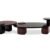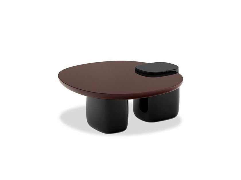 A series of lacquered coffee tables with layered curves that nest and interlock. Grouped together, they form a sculptural composition where surface, shadow, and silhouette flow in quiet rhythm.