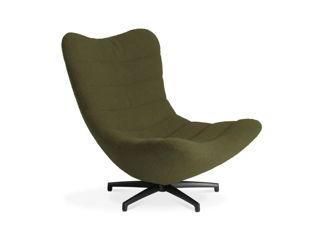 Swivel high-back fabric armchair with spoke base from the RENCONTRE series.‎