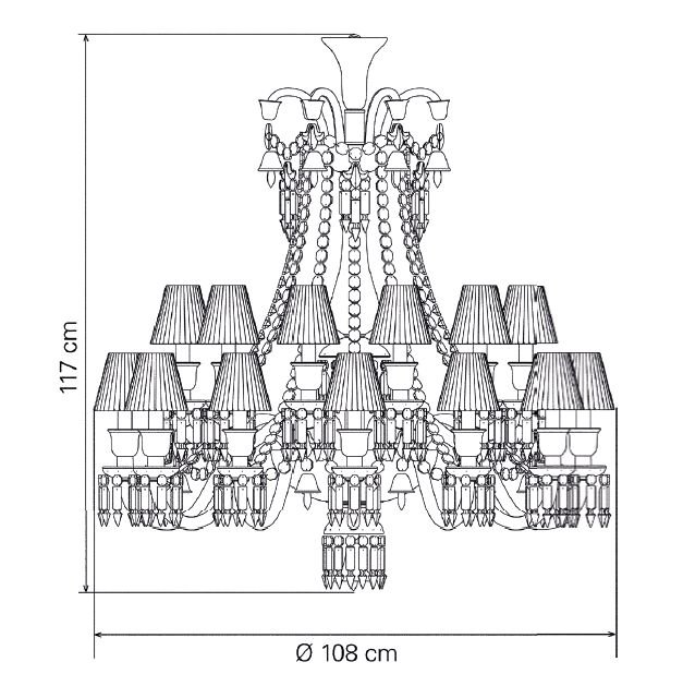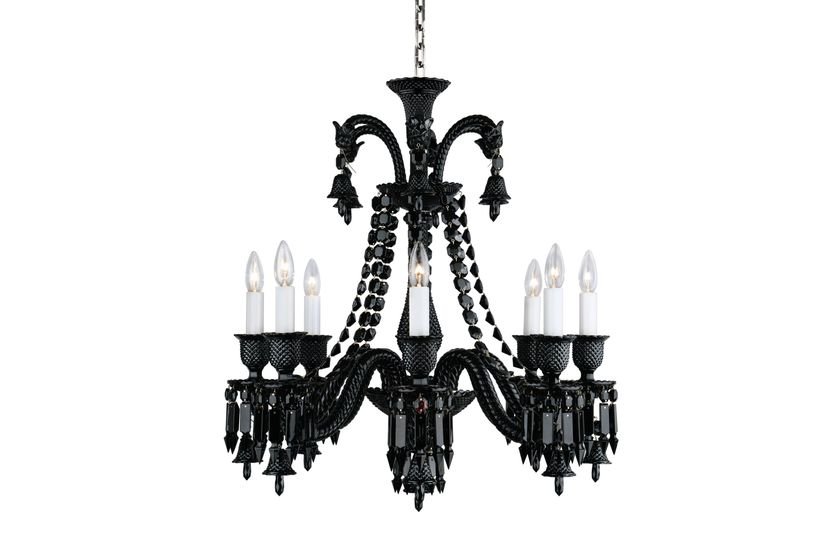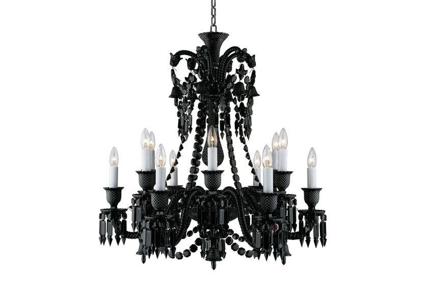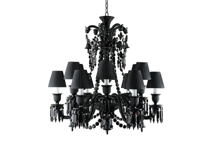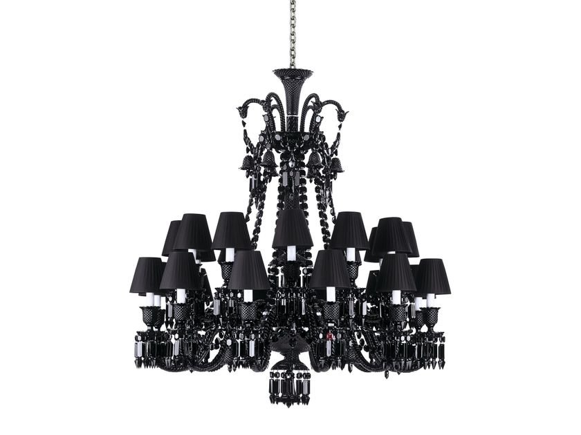 The 24-light chandelier is a stunning and bountiful showcase of black crystal.‎ The ‘anti-chandelier’ par excellence, black crystal is the exact antithesis of the translucence of Clear crystal.‎ Black instead imbues this classical shape with great power, revealing its sculptural dimension in a whole new way.‎ The chandelier is a truly decorative object, a dazzling sculpture.‎